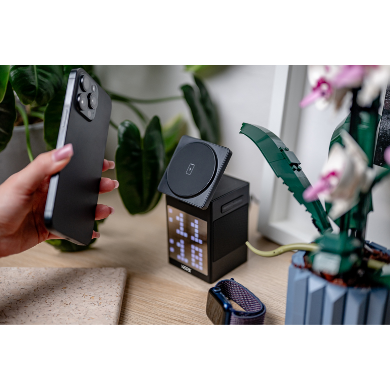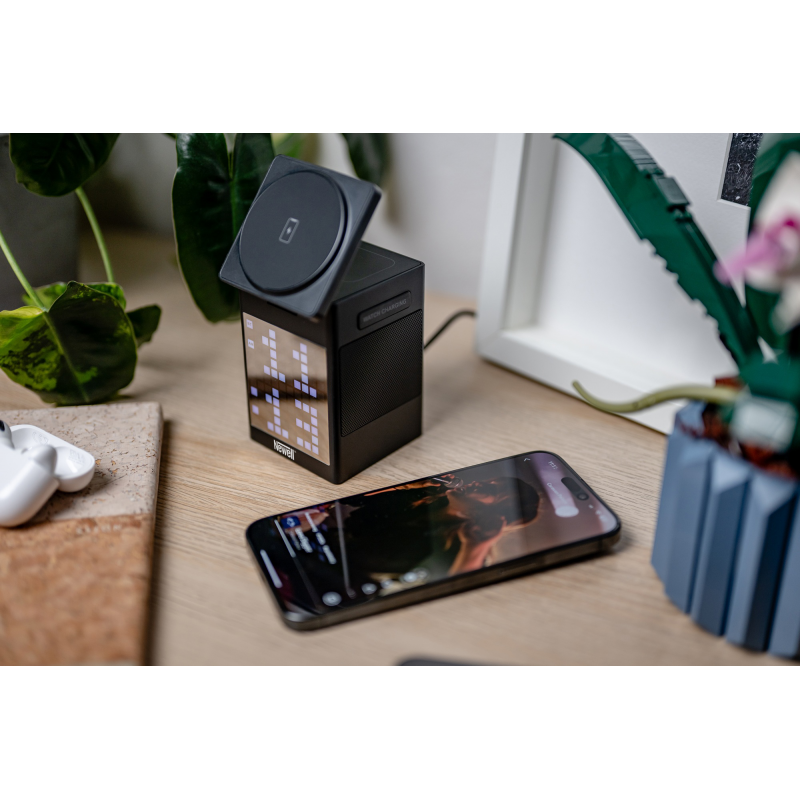 Lubisz otaczać się nietuzinkowymi gadżetami? A możesz szukasz prezentu dla kogoś takiego? Newell induOne MagPlay to doskonały wybór. Cyfrowy zegar zintegrowany z urządzeniem to coś więcej niż wyświetlanie godziny. 110 diod RGB tworzy razem efektowny ekran w stylu "pixel art". Możesz wybrać poziom jasności, a także ulubione kolory podświetlenia. Ładowarka oferuje również specjalne wygaszacze ekranu w formie animacji, które wniosą więcej kolorów do codziennej rutyny. Budzik ułatwi rozpoczynanie dnia o odpowiedniej porze. Trzy dostępne alarmy pozwolą ustawić dodatkowe przypomnienia – np. o treningu lub ważnym spotkaniu.
