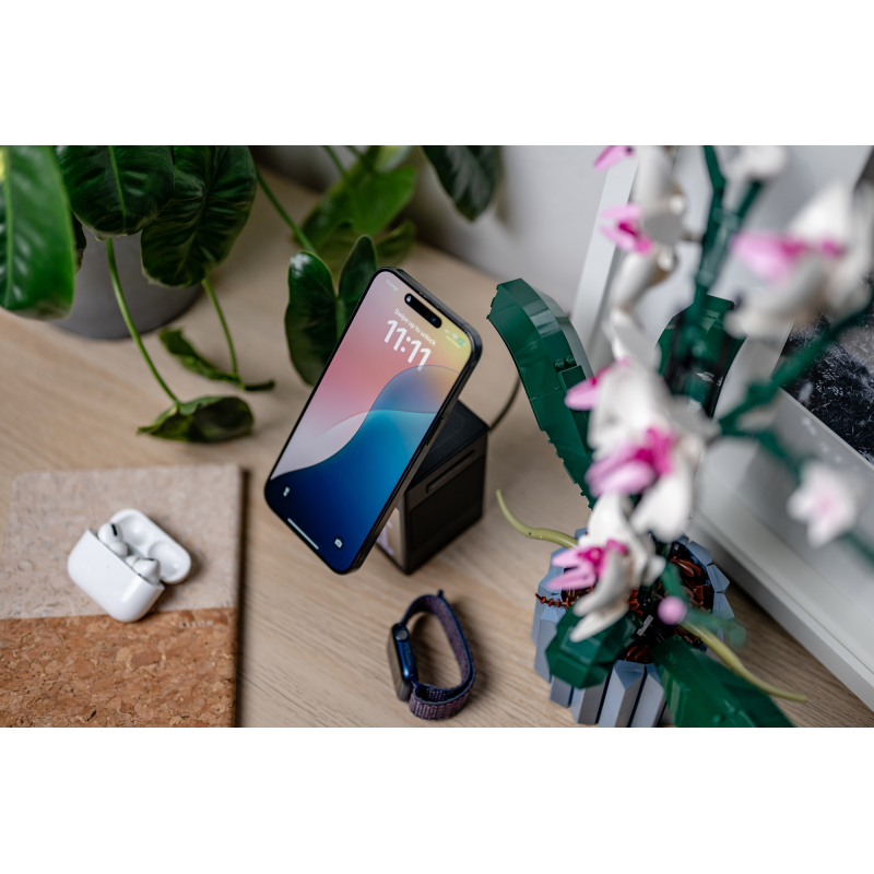 Dzięki mocnemu magnetycznemu systemowi mocowania zgodnemu z technologią MagSafe Twój smartfon zawsze precyzyjnie dopasowuje się do ładowarki, gwarantując idealne ułożenie podczas zasilania. Nie musisz martwić się o przypadkowe przesunięcia czy konieczność ciągłego manewrowania iPhone'em, by złapał pole indukcji. Ten niewielki, ale istotny detal sprawia, że ładowanie staje się prostsze i – co równie ważne – bezpieczniejsze dla Twojego urządzenia.