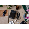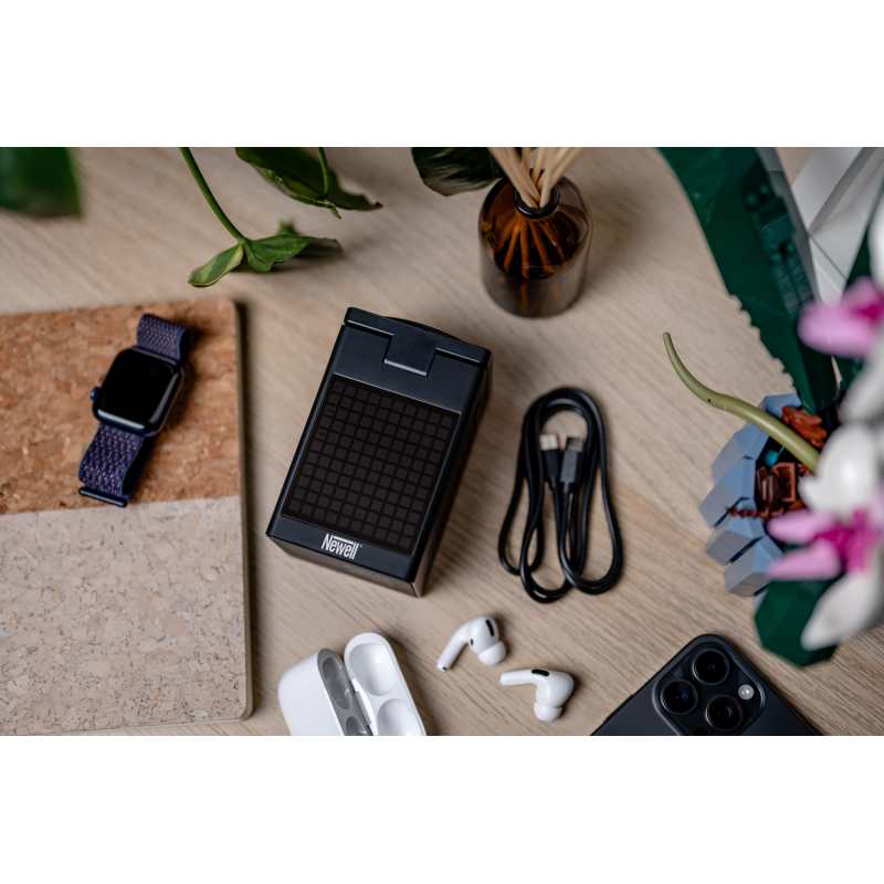 Urządzenie zasilane jest poprzez złącze USB-C – dzięki temu możesz skorzystać z popularnego i łatwo dostępnego standardu (odpowiedni kabel znajdziesz w zestawie). Gdy chcesz ładować swoje urządzenia, ładowarka Newell induOne Mag Play musi zostać podłączona do źródła prądu. Stacja posiada jednak własny wbudowany akumulator o pojemności 1000 mAh. Dzięki niemu urządzenie może działać bezprzewodowo, gdy zależy Ci tylko na wyświetlaniu godziny lub animacji, a także wtedy, kiedy korzystasz z głośnika Bluetooth.