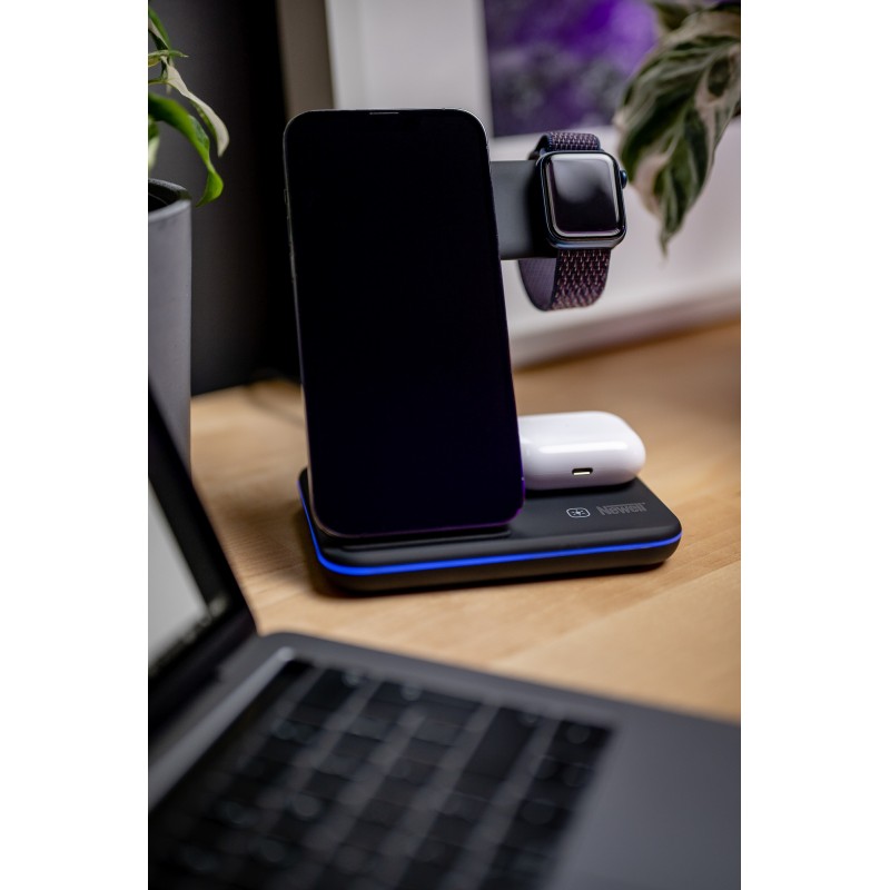 stacja umożliwiająca bezprzewodowe ładowanie 3 urządzeń jednocześnie