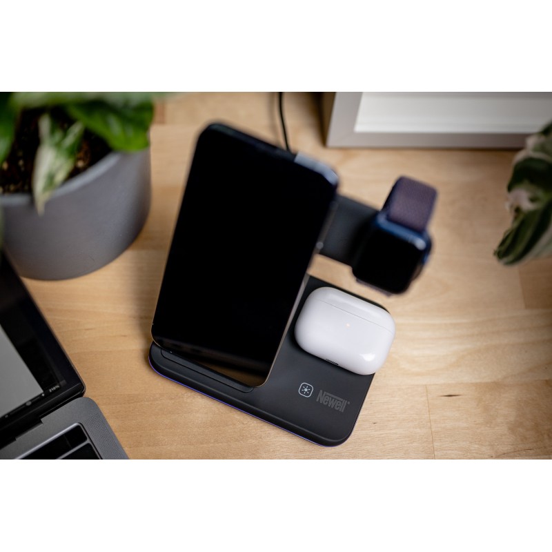Z ładowarką indukcyjną Newell induOne N-GY-Z5A ulubione urządzenia mobilne, które towarzyszą Ci na co dzień, otrzymają specjalne miejsce w Twoim domu lub biurze. Smartfon, słuchawki i zegarek Apple Watch będą zawsze pod ręką, naładowane w 100 procentach! Chcesz zaprowadzić porządek na swoim biurku? A może męczy Cię już codzienne szukanie ładowarek do różnych urządzeń, które nieustannie zmieniają swoje położenie? Newell induOne N-GY-Z5A do 3 urządzeń mobilnych pomoże rozprawić się z tymi problemami!