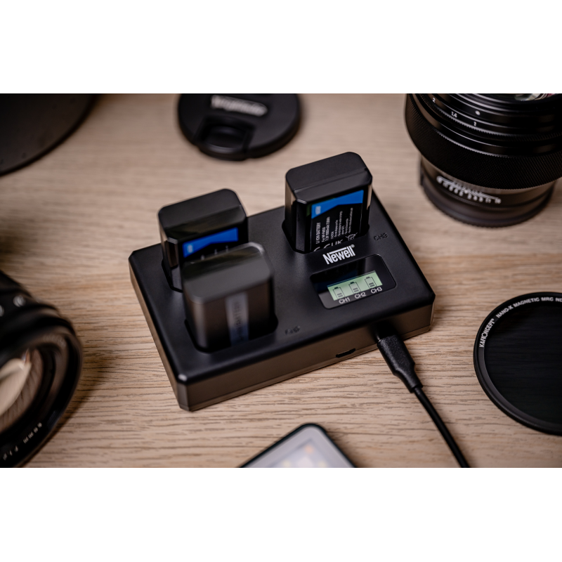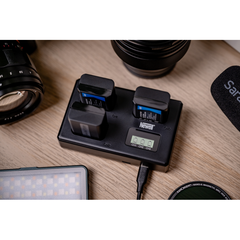 Zamiast ładować akumulatory NP-FW50 jeden po drugim, z ładowarką Newell TT-USB-C robisz to równolegle. Trzy niezależne kanały pozwalają uzupełniać energię we wszystkich ogniwach jednocześnie, co znacząco ułatwia proces przygotowań do pracy z aparatem. Zaawansowane kontrolery precyzyjnie dobierają parametry prądu ładowania — 450 mAh przy trzech akumulatorach, 650 mAh przy dwóch i aż 850 mAh przy jednym. Cały proces jest przy tym bezpieczny, wydajny i przyjazny dla żywotności ogniw. Ładowarka chroni przed przegrzaniem i przeładowaniem, dbając o Twój sprzęt, gdy Ty w pełni oddajesz się swoim projektom foto-video.
