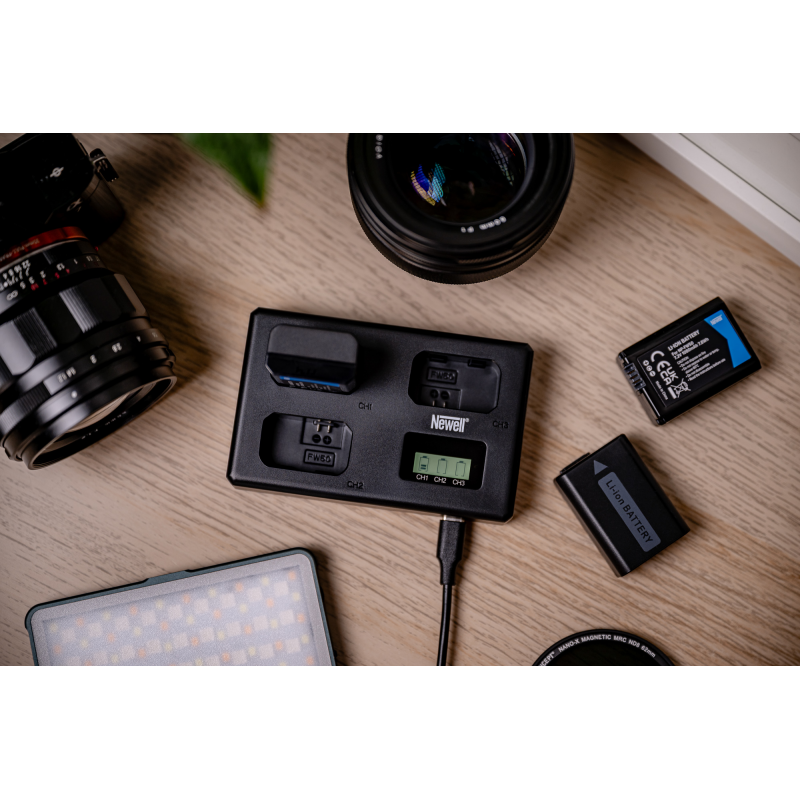 Newell TT-USB-C do akumulatorów NP-FW50 to trójkanałowa ładowarka stworzona z myślą o fotografach i twórcach video, którzy często pracują w terenie. Jej kompaktowe wymiary (10,6 x 6,7 x 2,9 cm) i niewielka waga (71 g) sprawiają, że bez problemu zmieści się w każdej torbie plecaku, czy nawet kieszeni. Możliwość jednoczesnego ładowania aż trzech akumulatorów oznacza mniej przestojów i więcej czasu na realizację kreatywnych pomysłów. Dołączony do zestawu odpinany kabel USB-C ułatwi pakowanie – w razie potrzeby możesz wrzucić go do innej kieszonki, jeśli miejsce na samą ładowarkę jest ograniczone.