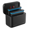 Telesin SO-BCG-03-TIS to dwukanałowa ładowarka zaprojektowana specjalnie dla akumulatorów przeznaczonych do pracy z kamerą Insta360 X3. Urządzenie pozwala na jednoczesne ładowanie dwóch ogniw, zapewniając błyskawiczne uzupełnienie energii – nawet w 65 minut (przy zasilaniu 12 V / 2 A lub wyższym). Dzięki wsparciu dla standardu Power Delivery 3.0 i inteligentnemu zarządzaniu mocą ładowarka automatycznie optymalizuje prędkość ładowania, stawiając na pierwszym miejscu te ogniwa, które najbardziej potrzebują uzupełnienia energii.