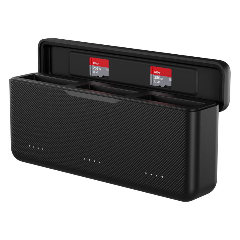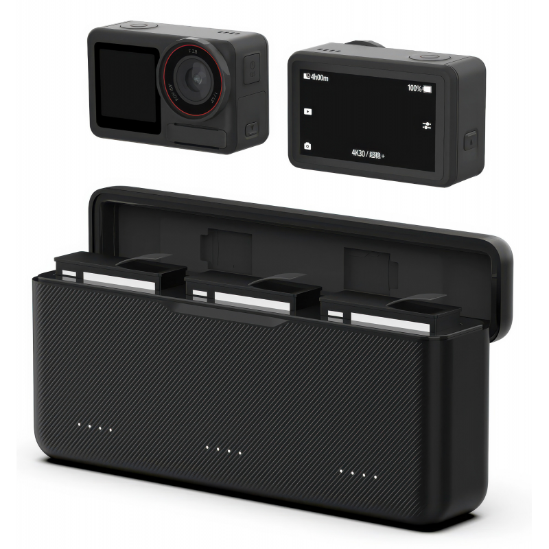 Telesin S0-BCG-34-TDJ to kompaktowa ładowarka, która umożliwia jednoczesne uzupełnianie energii w nawet 3 akumulatorach do kamery sportowej DJI Osmo Action 5 Pro. Urządzenie obsługuje technologię szybkiego ładowania Power Delivery. Dzięki systemowi zarządzania energią priorytetowo ładuje najbardziej rozładowane ogniwa, jednocześnie chroniąc je przed przegrzaniem i przeciążeniem. Po osiągnięciu 80% urządzenie automatycznie przełącza się na łagodny tryb uzupełniania energii, co skutecznie przedłuży żywotność Twoich ogniw. Wbudowane diody LED pozwalają sprawdzić poziom naładowania każdego akumulatora. W górnej części magnetycznie zamykanej klapki umieszczono 2 sloty na karty microSD. W zestawie kompatybilny kabel USB-C.