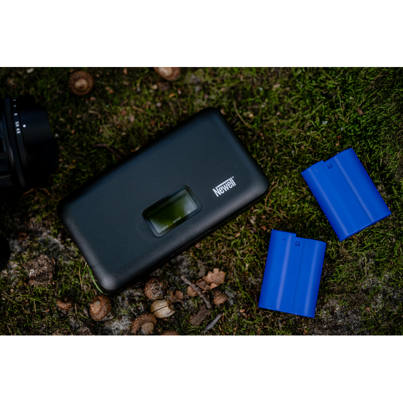 Ładowarka dwukanałowa Newell LCD z funkcją power banku i czytnikiem kart SD to wszystko, czego potrzebujesz, aby z powodzeniem uzupełniać energię w akumulatorach BLN-1 do Olympus. Innowacyjne urządzenie pozwoli Ci jeszcze lepiej uporządkować akcesoria fotograficzne, które towarzyszą Ci na co dzień. Wbudowany czytnik kart pamięci SD umożliwia transfer plików, bez konieczności sięgania po dodatkowe narzędzia. Po zainstalowaniu akumulatorów wewnątrz ładowarki możesz też zamienić ją w power bank. Urządzenie wyposażono również w zintegrowany kabel USB. Intuicyjna obsługa, ekran LCD i precyzyjne oznaczenia portów oraz gniazd gwarantują bezproblemową obsługę. To nie tylko ładowarka – to twój partner w lepszej organizacji projektów foto-video.