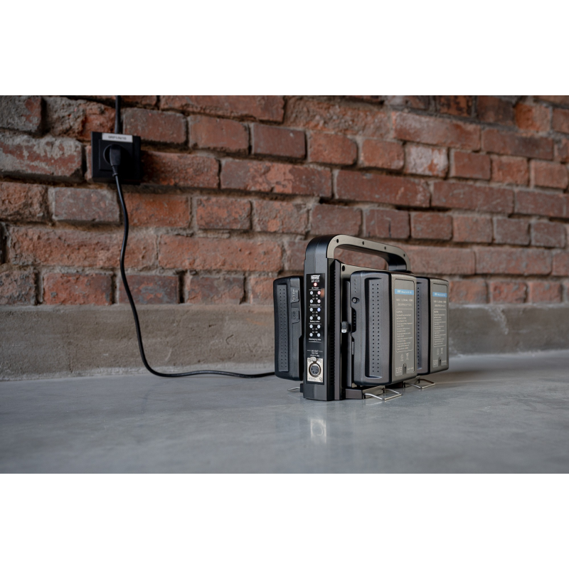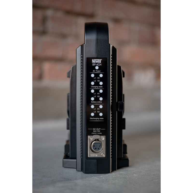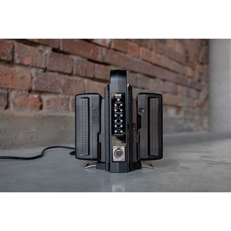Ładowarka czterokanałowa Newell BP-4CH do akumulatorów V-mount to profesjonalne urządzenie pozwalające szybko i wygodnie uzupełnić zapas energii w ogniwach, które mają szerokie zastosowane branży filmowej i fotografii. Bez względu na pojemność oraz liczbę używanych akumulatorów w pewnym momencie pojawi się w końcu konieczność ich naładowania. Z pomocą przychodzi wtedy Newell do akumulatorów V-Mount - profesjonalna ładowarka, która chroni ogniwa, zapewniając im maksymalną żywotność. Stacja wyposażona w wygodny uchwyt i rozkładane nóżki może pełnić również funkcję powerbanku, do którego podłączymy 4-pinowy przewód XLR. Ten standard wykorzystywany jest np. w profesjonalnych kamerach filmowych.