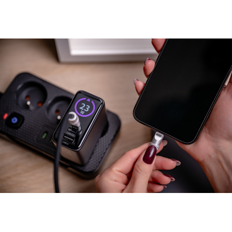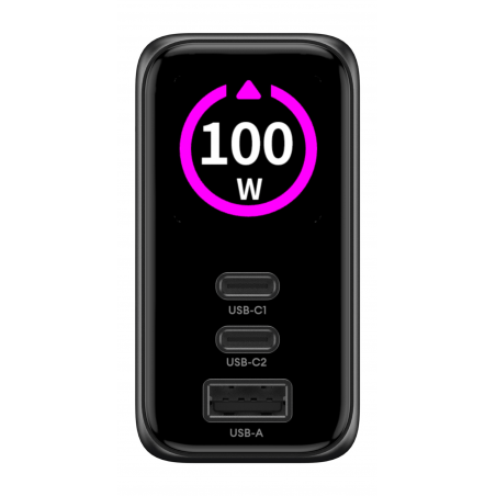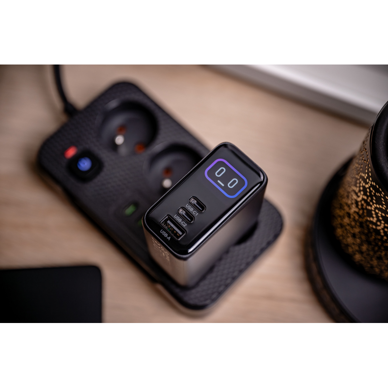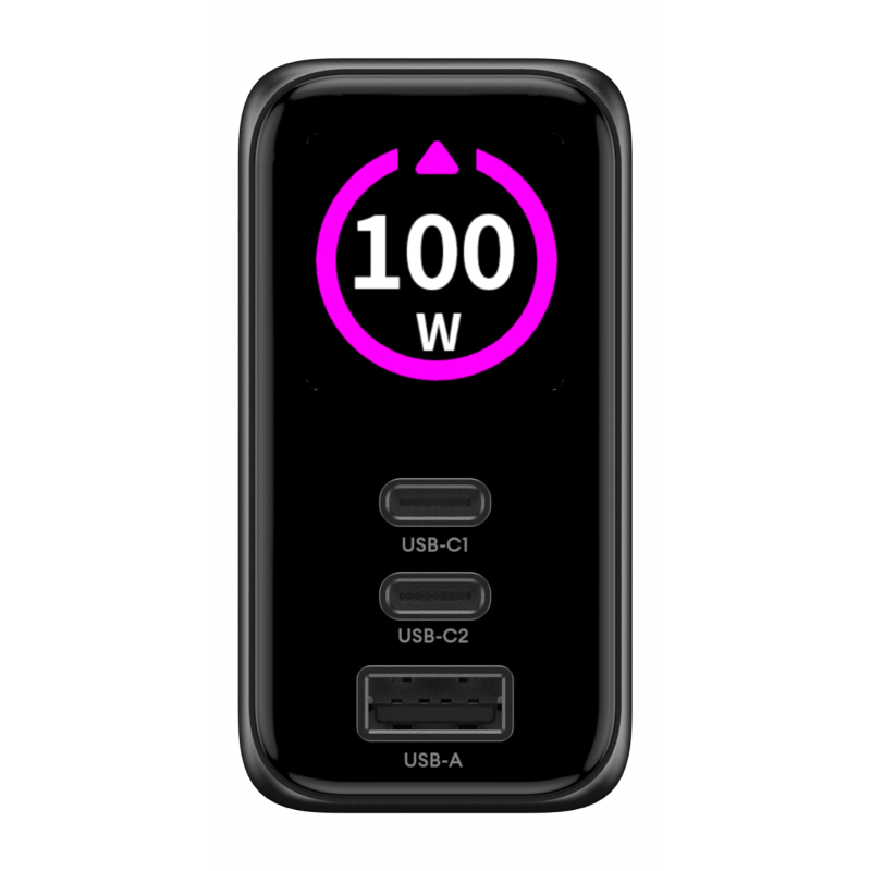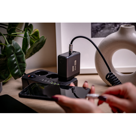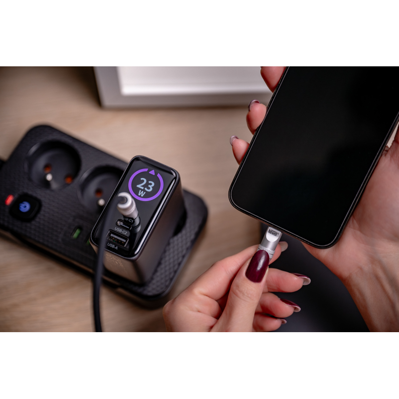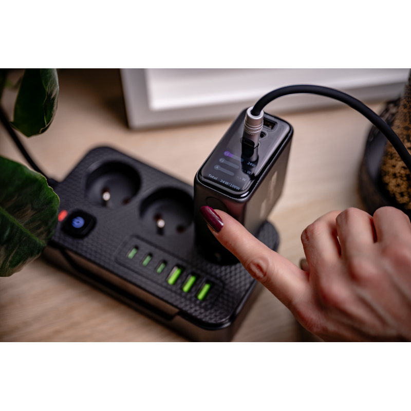 Wielozadaniowa ładowarka sieciowa Newell GaN 100 W TFT - EU to prawdziwa oszczędność miejsca i czasu. 2 porty USB-C i jedno gniazdo USB-A pozwalają na jednoczesne ładowanie nawet trzech różnych urządzeń. Niezależnie od tego, czy podłączasz do niej laptopa, smartfon i słuchawki, czy tablet i powerbank – ładowarka automatycznie dostosuje moc, aby każde urządzenie otrzymało optymalny zastrzyk energii.