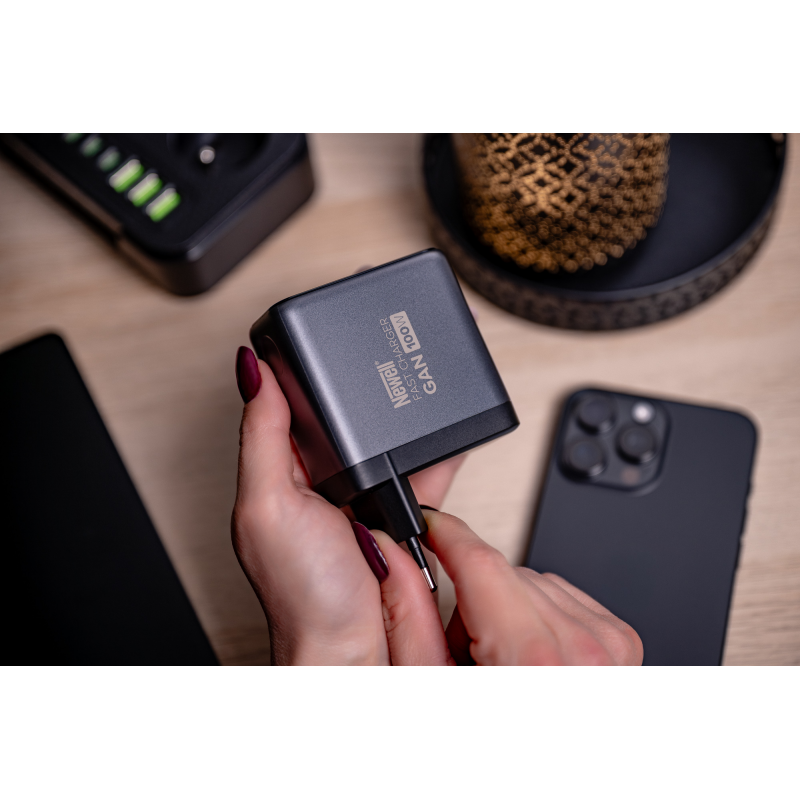Ładowarka sieciowa Newell GaN 100 W TFT - EU korzysta z najnowszej generacji półprzewodników z azotku galu, stosowanych m.in. w technologiach kosmicznych. GaN pozwala na osiągnięcie znacznie wyższej wydajności przy mniejszych stratach energii, co oznacza szybsze ładowanie i niższą temperaturę pracy w porównaniu z tradycyjnymi ładowarkami krzemowymi. Dzięki temu możesz bezpiecznie zasilać nawet wymagające urządzenia, takie jak laptopy, bez obaw o przegrzewanie się sprzętu czy spadki mocy. GaN to nowy standard mobilnego ładowania – kompaktowy, energooszczędny i wyjątkowo skuteczny.