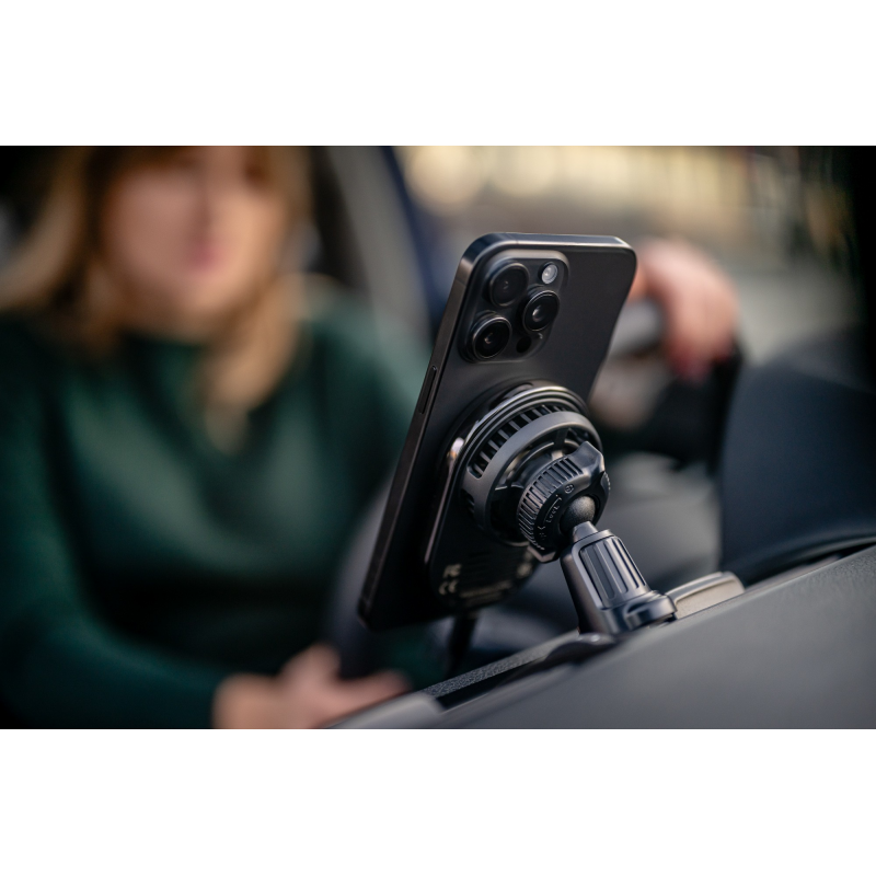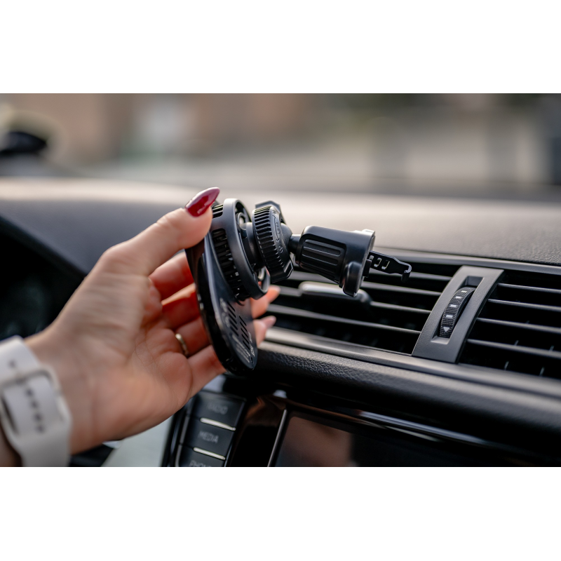 Skuteczny i uniwersalny system mocowania zastosowany w uchwycie samochodowym Newell z indukcyjną ładowarką MagSafe S18 pozwala zainstalować urządzenie w aucie w ciągu kilku sekund.