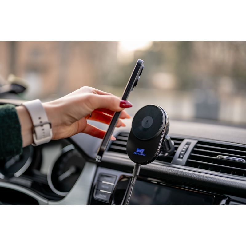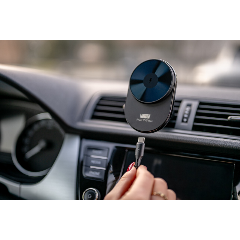 Uchwyt samochodowy Newell z ładowarką indukcyjną to idealne rozwiązanie dla posiadaczy iPhone'ów od modelu 12 w górę. Urządzenia te zostały wyposażone w standard MagSafe. To autorskie rozwiązanie Apple, które łączy ładowanie indukcyjne z mocowaniem magnetycznym. Dzięki precyzyjnym magnesom ładowarka MagSafe idealnie przylega do smartfona, umożliwiając wygodne ładowanie akumulatora. To także sposób na pewne podłączenie dodatkowych akcesoriów, jak uchwyty, power banki lub portfele.