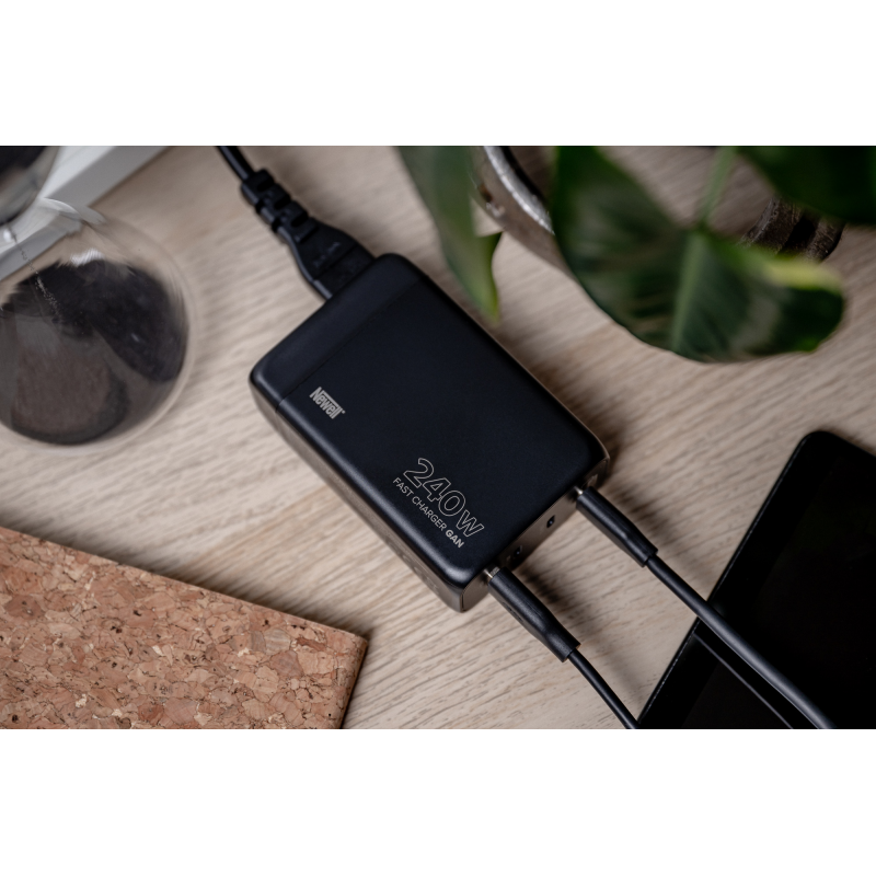 Ładowarki o dużej mocy, wykorzystywane do ładowania laptopów, potrafią zajmować sporo miejsca. Newell GaN 240 W - EU pozwoli Ci odchudzić bagaż, gdy liczy się każdy centymetr przestrzeni w Twoim plecaku lub walizce. Jedna ładowarka wystarczy, aby uzupełnić energię w Twoim podręcznym niezbędniku, składającym się np. z komputera, tabletu, smartfona i przenośnej konsoli do gier. Maksymalna moc wyjściowa wynosząca imponujące 240 W umożliwia ładowanie laptopów i bardziej wymagających urządzeń, bez konieczności sięgania po duże zasilacze z grubymi kablami.