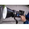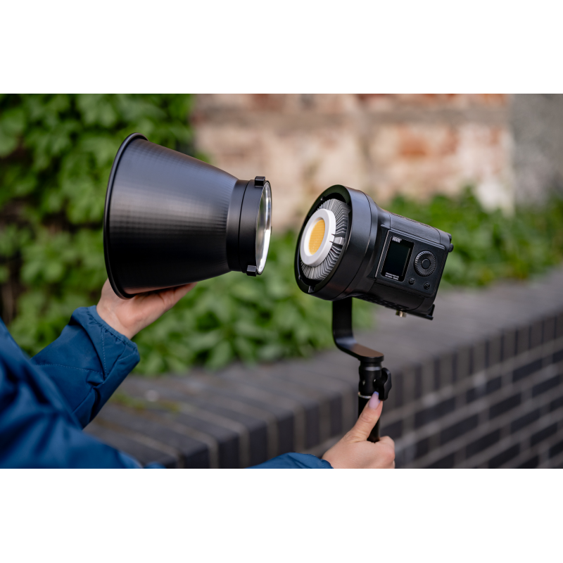 Lampę wyposażono w standardowe mocowanie Bowens, które daje Ci dostęp do setek kompatybilnych modyfikatorów światła – od softboxów i wrót, przez strumienice i beauty dishe, aż po czasze. Dzięki temu zyskujesz pełną swobodę w kształtowaniu charakteru scen, zarówno w filmie, jak i w fotografii. W zestawie znajdziesz klasyczną czaszę, która pozwoli Ci skoncentrować wiązkę światła i zmaksymalizować jego natężenie. Ten modyfikator świetnie sprawdzi się m.in. w portretach, packshotach i dynamicznych ujęciach.