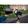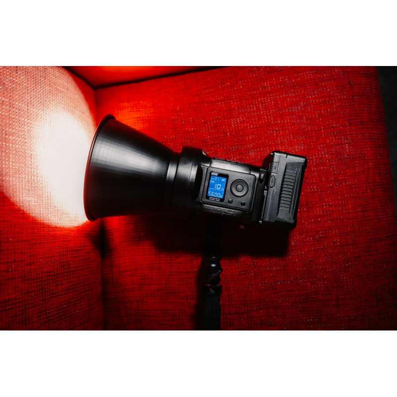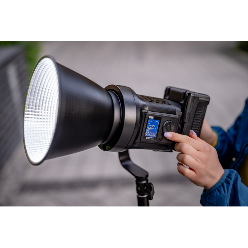 Wygodną kontrolę parametrów światła zapewnia ergonomiczne pokrętło, przyciski oraz czytelny ekran LCD. Jeden rzut oka wystarczy, aby sprawdzić, na jakim kanale i w jakiej grupie pracuje lampa, jaka jest jej aktualna temperatura barwowa światła i czy urządzenie łączy się z pilotem. Pokrętło zapewnia jeszcze szybszą kontrolę parametrów. Wszystko to sprawia, że zaplanowane ujęcia i kadry przygotujesz w ciągu kilku sekund.
