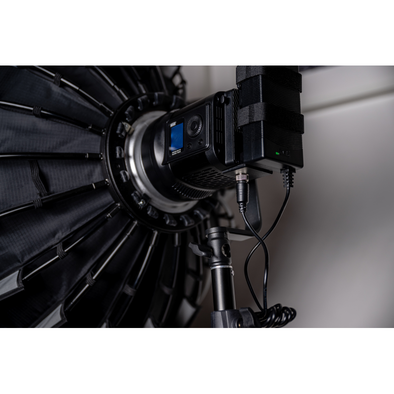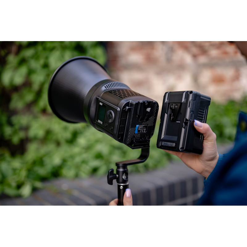 Pravaha Max 135 WB została wyposażona w gniazdo V-Lock, które umożliwia zasilanie lampy przy pomocy popularnych akumulatorów V-Mount. To rozwiązanie, które pokochają twórcy pracujący w terenie – bez kabli, bez ograniczeń, z pełną mobilnością. W zestawie znajduje się również klasyczny zasilacz sieciowy, który sprawdzi się podczas pracy w studiu. Możliwość wyboru między zasilaniem akumulatorowym, a sieciowym daje Ci pełną niezależność – pracujesz, jak chcesz i gdzie chcesz.