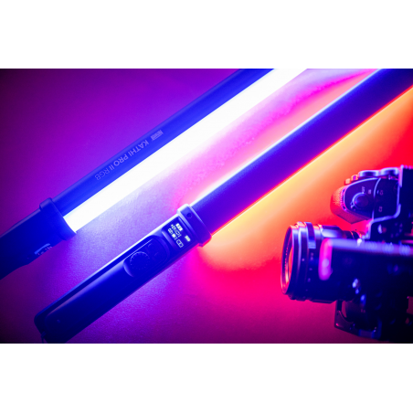 Newell RGB Kathi Pro II to druga wersja cieszącej się dużym zainteresowaniem lampy LED stworzonej z myślą o kreatywnych fotografach i filmowcach. Charakterystyczny kształt miecza świetlnego i 64 cm długości zapewnią Ci ogromną swobodę twórczą, zarówno podczas pracy "z ręki", jak również po zainstalowaniu urządzenia na statywie z gwintem 1/4". Lampa oferuje regulację temperatury barwowej (2700 - 6500 K), możliwość zmiany koloru światła w obrębie barw HSI, a także 12 gotowych efektów specjalnych (m.in. wóz strażacki, burza z piorunami lub ognisko). Port USB-C umożliwia szybkie ładowanie wbudowanego akumulatora lub zasilanie za pomocą power banku. To idealny wybór dla osób, które chcą bawić się kolorami, robić klimatyczne zdjęcia i filmy, eksperymentować z efektami specjalnym.