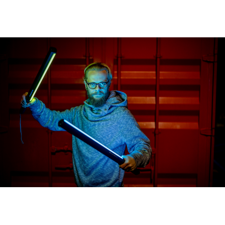Jak przystało na miecz świetlny, Newell RGB Kathi Pro II oferuje wygodną rękojeść, która perfekcyjnie leży w dłoni. Nie oznacza to jednak, że praca "z ręki" to jedyne rozwiązanie. Lampę z powodzeniem zainstalujesz na statywie z gwintem 1/4", a dzięki aplikacji mobilnej, będziesz mógł/mogła sterować urządzeniem zdalnie. Miecz świetlny może stać się częścią scenografii lub znajdować się w trudno dostępnym miejscu. Aplikacja z funkcją światłomierza pozwoli wygodnie przełączać się między różnymi kolorami, a także sterować jasnością i efektami specjalnymi.