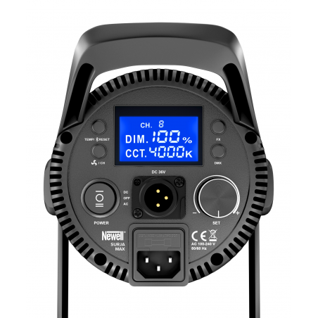 Dzięki wysokiemu wskaźnikowi odwzorowania barw (CRI: 96+) lampa LED Newell Surja Max 500 gwarantuje precyzyjne odwzorowanie kolorów, co jest niezwykle istotne w branży filmowej i fotograficznej, a także na scenach. Z odległości 1 metra, przy temperaturze barwowej 5600 K, lampa osiąga natężenie światła wynoszące 18200 lx. Po zainstalowaniu na niej dołączonej do zestawu czaszy wartość ta wzrasta aż do 74000 lx, co zapewnia jeszcze większą elastyczność pracy.