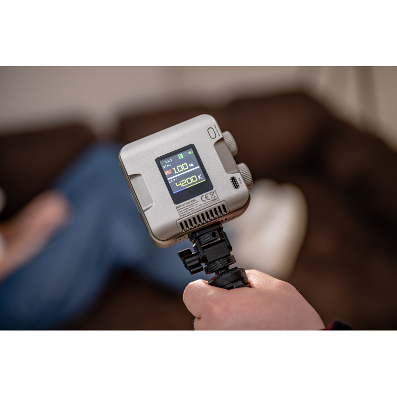 Newell Zora Mini 40 RGB to najmniejsze i najbardziej poręczne urządzenie w rodzinie lamp Zora. Wymiary 80 x 88 x 55 mm sprawiają, że bez problemu zmieści się w kieszeni kurtki albo niewielkiej torbie fotograficznej. To idealne rozwiązanie dla vlogerów tworzących treści w ruchu, fotografów pracujących w plenerze oraz filmowców szukających kompaktowej lampy, która uzupełni większy zestaw oświetleniowy. Wbudowany akumulator 4500 mAh pozwala pracować niezależnie od gniazdka wszędzie tam, gdzie liczą się mobilność, szybkość działania i gotowość do nagrywania bez długich przygotowań.