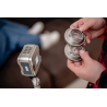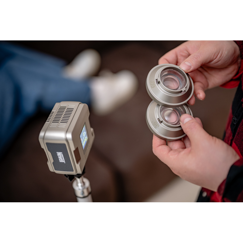 W zestawie z lampą Newell Zora Mini 40 RGB znajdziesz dwie soczewki kolimacyjne o kątach 36° i 60°, które pozwalają szybko dopasować charakter światła do konkretnej sceny. Soczewka 36° tworzy wąską, skoncentrowaną wiązkę, idealną do punktowego oświetlania twarzy, produktów i detali. Przy temperaturze 5600 K pozwala osiągnąć natężenie światła sięgające 51900 lx z odległości 0,3 m. Soczewka 60° oferuje szerszy kąt świecenia, dzięki czemu lepiej sprawdza się przy równomiernym oświetlaniu większego obszaru. Obie soczewki montuje się w kilka sekund za pomocą mocowania Mini Bowens, co pozwala błyskawicznie dopasować lampę do aktualnych potrzeb.