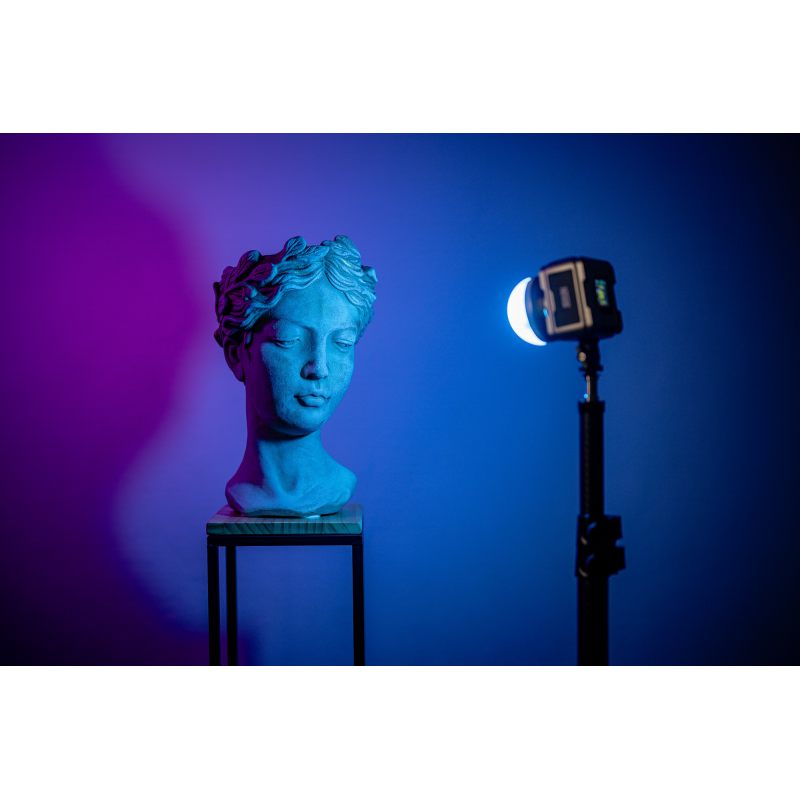 Newell Zora Mini 40 RGB zapewnia dużą swobodę pracy z kolorem i pozwala precyzyjnie dopasować charakter światła do konkretnej sceny. Lampa oferuje pełne spektrum RGB z regulacją barwy w zakresie 0–360°, a także płynną kontrolę nasycenia i jasności w przedziale 0–100%. Do dyspozycji masz również regulację temperatury barwowej w zakresie 2700–6500 K, co pozwala płynnie przechodzić od ciepłych, miękkich tonów po chłodniejsze, bardziej neutralne światło. To wszechstronne narzędzie, które sprawdzi się zarówno w fotografii, jak i przy nagraniach wideo – wszędzie tam, gdzie liczy się świadome operowanie kolorem i nastrojem sceny.