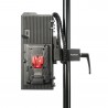 Lampa, poprzez Control Box, może być zasilana zarówno z sieci elektrycznej, jak i za pomocą dwóch akumulatorów V-mount. Dzięki temu Aputure LS 300X doskonale sprawdzi się zarówno w stacjonarnym, jak i mobilnym studio plenerowym. Używając tylko jednego akumulatora, lampa jest w stanie świecić z połową swojej maksymalnej mocy.