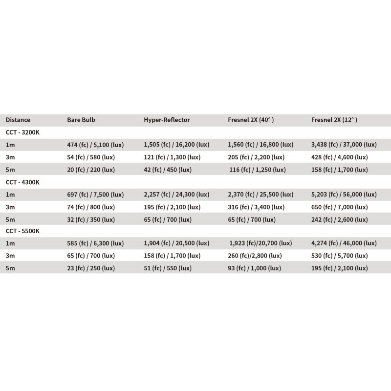1 m 7500 lux 24300 lux 25500 lux 56000 lux