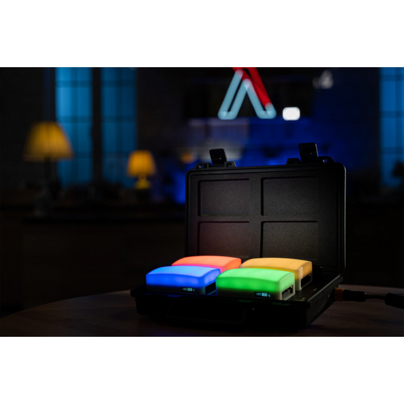 Zestaw Aputure MC Travel Kit przeznaczony jest dla filmowców, którym niestraszne jest podróżowanie i filmowanie w ciągłym biegu. Wytrzymała walizka skrywa w sobie wyjątkową zawartość. 4 lampy LED Aputure MC są dobrze chronione we wnętrzu jej twardej skorupy. Dodatkowo pełni ona funkcję bezprzewodowej ładowarki, dzięki której Twoje lampy będą zawsze gotowe do działania.