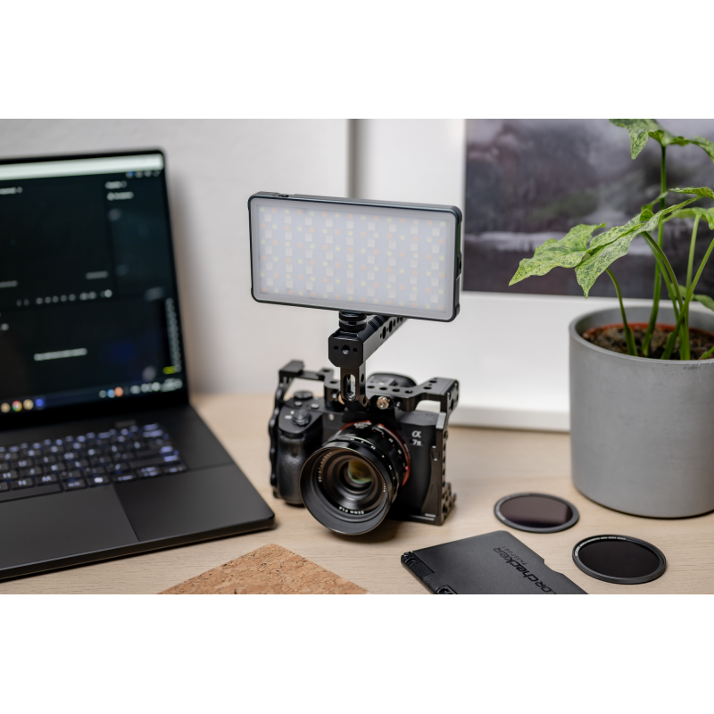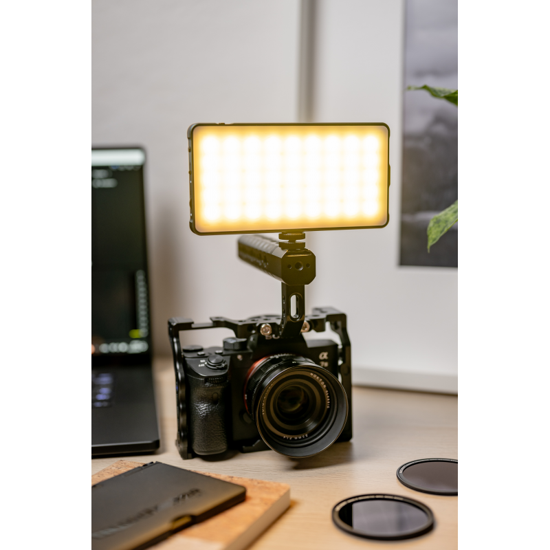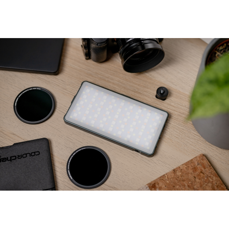 RGB Rangha jest wymiarami zbliżona do smartfona, dzięki czemu zmieścisz ją prawdopodobnie w każdej torbie fotograficznej, a nawet w kieszeni spodni. Obudowa wykonana z lotniczego aluminium zapewni ochronę w każdych warunkach. Na spodzie i boku lampa wyposażona jest w gwint statywowy ¼ cala, który umożliwia wszechstronny montaż.