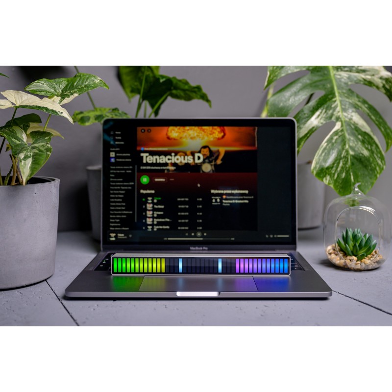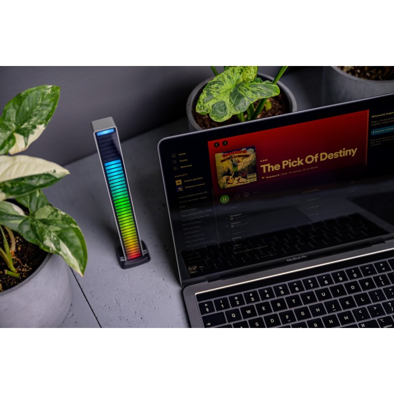 Equalizer RGB Redleaf 40LED w kolorze srebrnym to wyjątkowa kolumna świetlna z 40 diodami LED, która reaguje na dźwięk w czasie rzeczywistym. Z jego pomocą podkreślisz rytm ulubionych piosenek i stworzysz niepowtarzalny klimat w domu, biurze, samochodzie lub studiu nagrań. Efektowne wizualizacje wspaniale uzupełnią również stanowisko gracza lub sprawdzą się jako alternatywa dla technologii Ambilight stosowanej w telewizorach. Panel świetlny pozwala uzyskać 153 różne kombinacje świetlnych animacji w różnych kolorach. Możesz nim sterować zarówno z poziomu fizycznych przycisków, jak i aplikacji mobilnej na systemy iOS oraz Android, która pozwala kontrolować kilka equalizerów Readleaf jednocześnie. Urządzenie posiada wbudowany akumulator, który szybko naładujesz przez port USB-C.