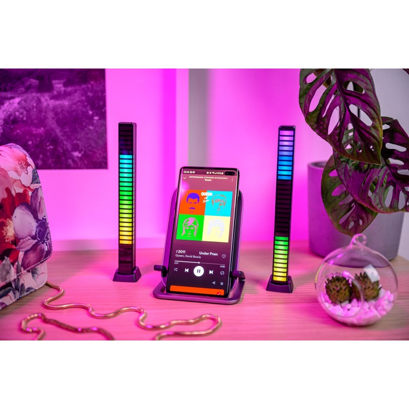 Equalizer RGB Redleaf 32LED 3d to wyjątkowa kolumna świetlna wyposażona w 32 diody LED reagująca na dźwięk w czasie rzeczywistym. Podkreśl brzmienie ulubionych piosenek lub stwórz niepowtarzalny klimat w domu! To także świetne uzupełnienie stanowiska gracza oraz alternatywa dla technologii Ambilight stosowanej w telewizorach. Urządzenie oferuje 153 kombinacje świetlnych animacji w różnych kolorach. Aplikacja na smartfony pozwala sterować panelem zdalnie, a także kontrolować grupę kilku urządzeń jednocześnie. Specjalny tryb pracy sprawia, że equalizer może też pełnić rolę... gry zręcznościowej. Redleaf 32LED 3d to również niepowtarzalny efekt trójwymiarowych animacji. Panel LED przechodzi z frontu equalizara na jego boczne krawędzie, przez co wizualizacje są jeszcze lepiej widoczne.