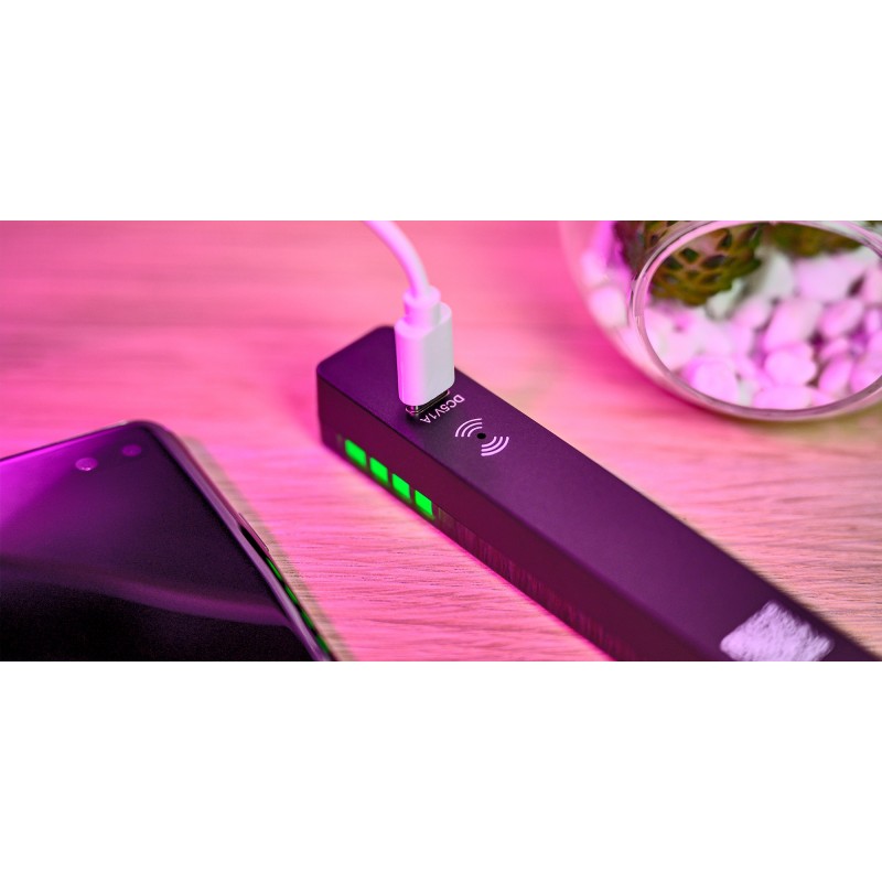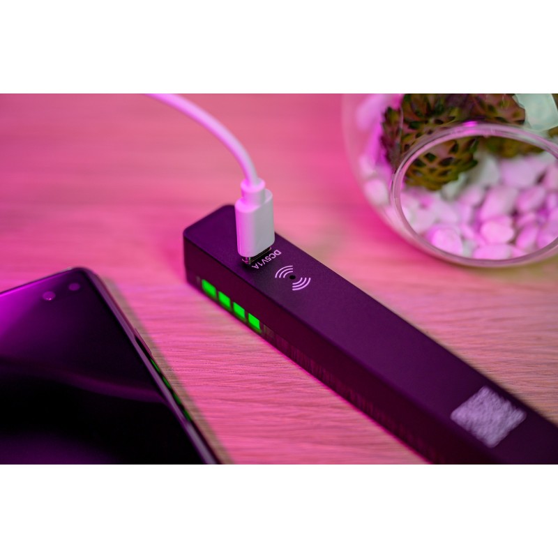 Wybierając equalizer RGB Redleaf 32LED 3d nie musisz martwić się o zapas baterii. Urządzenie szybko naładujesz z poziomu power banku, komputerowego portu USB lub ładowarki. Do zestawu dołączono metrowy przewód USB-A / USB-C, który ułatwi to zadanie. O poziomie naładowania muzycznego panelu poinformują Cię świecące diody LED, których będzie przybywać wraz z uzupełnianą mocą.