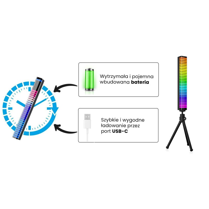 • kolumna świetlna reagująca na dźwięk wyposażona w 32 diody LED