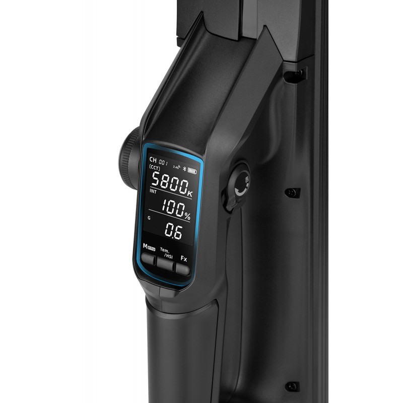 Ergonomiczna budowa modelu Yongnuo YN660LED to nie tylko optymalnie wyprofilowany uchwyt i perfekcyjne wyważenie. Wygodną obsługę zapewnia monochromatyczny wyświetlacz LED, na którym w przejrzysty sposób zmienisz takie parametry jak temperatura barwowa, nasycenie, moc lub kolor. Szybką i precyzyjną kontrolę poszczególnych wartości zapewni wygodne pokrętło, które z łatwością obsłużysz kciukiem. Producent nie zapomniał również o otworze gwintowym 1/4", który znajduje się w dolnej części lampy. Dzięki niemu zainstalujesz ją na statywie, a zdalną pracę umożliwi sterowanie z poziomu aplikacji mobilnej.