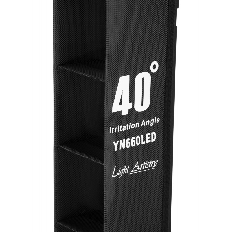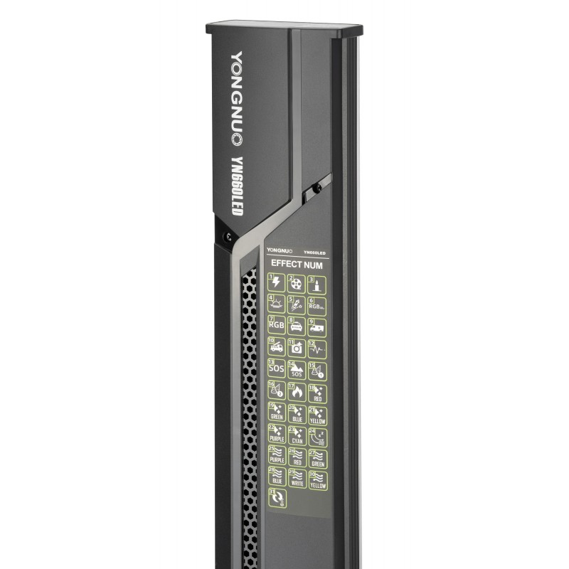 Marka Yongnuo stale powiększa rodzinę swoich lamp i podłużnych paneli LED o wszechstronnym zastosowaniu w filmie i fotografii. Model YN660LED na nowo definiuje ergonomię pracy z mieczem świetlnym. Urządzenie wyróżnia się charakterystycznym uchwytem, na którym umieszczono czytelny ekran LCD, przyciski funkcyjne oraz specjalne pokrętło zapewniające płynną regulację parametrów światła. Nowoczesną obudowę wykonano z aluminium i solidnego tworzywa. Producent zadbał również o właściwą wentylację i optymalne wywarzenie w przypadku instalacji akumulatorów. Wszystko to sprawia, że praca z lampą LED Yongnuo YN660LED jest wygodna zarówno po zainstalowaniu jej na statywie, jak i podczas oświetlania kadrów i ujęć "z ręki".