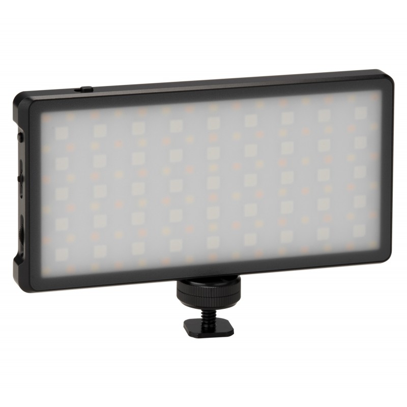 Zarówno na dłuższym, jak i na krótszym boku lampy umieszczono gwint 1/4". Zapewnia to jeszcze wygodniejszą pracę nad filmami i zdjęciami. Gwinty pozwolą zainstalować lampę pionowo lub poziomo na statywie, klatce lub innym urządzeniu. Do zestawu dołączono również specjalny adapter zimnej stopki. Możesz stabilnie zainstalować ją w uchwycie szynowym, który znajdziesz na niemal każdym aparacie fotograficznym.