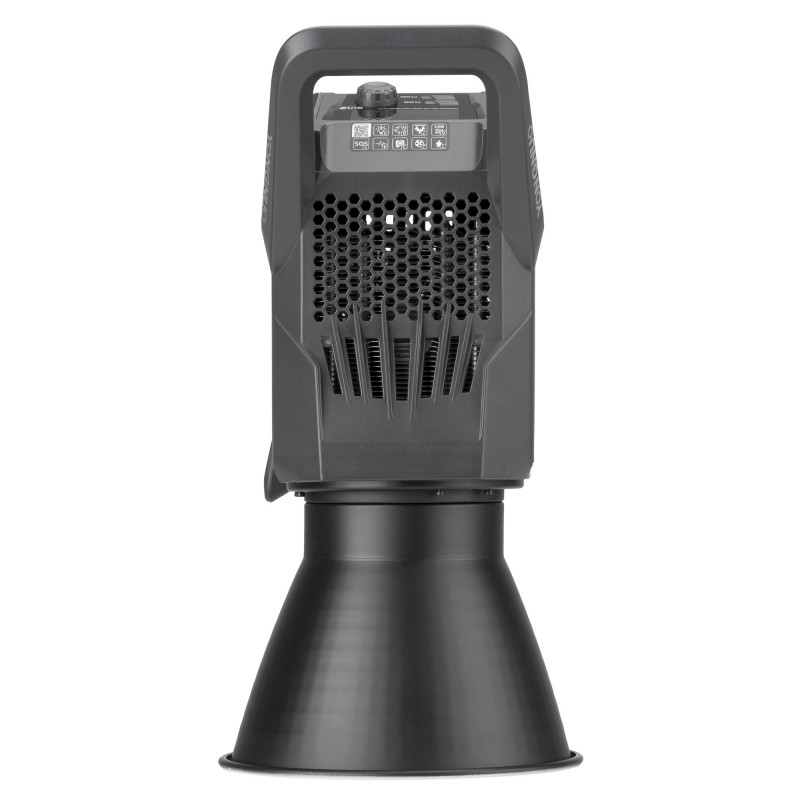 W tylnej części obudowy umieszczono szeroki uchwyt pozwalający w wygodny sposób regulować nachylenie lampy w zakresie 180º. Ustawienie lampy w optymalnej pozycji zapewnia solidna blokada z wygodnym w użyciu uchwytem. Na obudowie urządzenia nie zabrakło też ergonomicznego panelu kontrolnego z dużymi przyciskami, pokrętłem regulacyjnym oraz jasnym ekranem LCD.