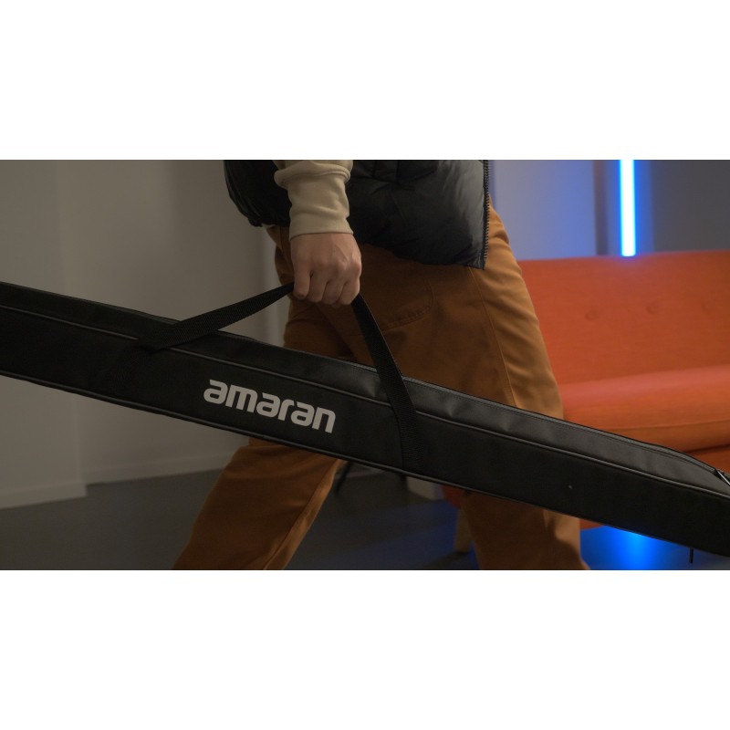 Amaran T4c to nowoczesna lampa LED o charakterystycznym kształcie miecza świetlnego. Urządzenie o długości 120 cm, wyposażone w wiele punktów montażu, otworzy przed Tobą zupełnie nowe sposoby pracy ze światłem. Innowacyjne diody LED RGBWW umożliwiają regulację temperatury barwowej światła (2500 K - 7500 K) oraz zmienianie kolorów dostępnych w ramach palety HSI. Na pokładzie nie zabrakło gotowych efektów specjalnych oraz programów imitujących pracę z filtrami żelowymi. W zestawie znajdziesz odpinany uchwyt z wbudowanym akumulatorem o pojemności 77 Wh, a także tradycyjny zasilacz. Miecz świetlny Amaran T4c jest kompatybilny z systemami Sidus Mesh oraz DMX512, a także z aplikacją Sidus Link (Android/iOS) pozwalającą zdalnie kontrolować urządzenie z odległości do 80 m.