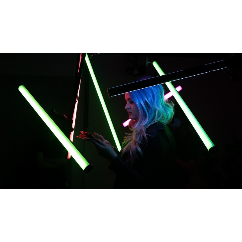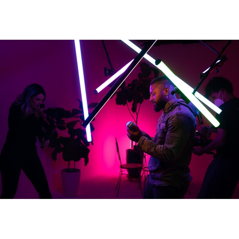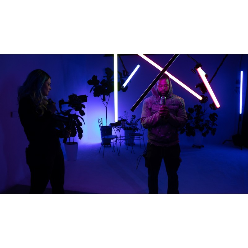 Charakterystyczny kształt miecza świetlnego otworzy przed Tobą zupełnie nowe sposoby kreacji unikalnych kadrów. Kolorowe światło świetnie sprawdzi się w nowoczesnych reklamach lub teledyskach, a samo urządzenie może być nie tylko narzędziem, ale i... bohaterem filmów lub zdjęć. Lampę LED Amaran T4c możesz z powodzeniem wykorzystać jako element scenografii, który przyciągnie widzów i na długo zapisze się w ich pamięci.
