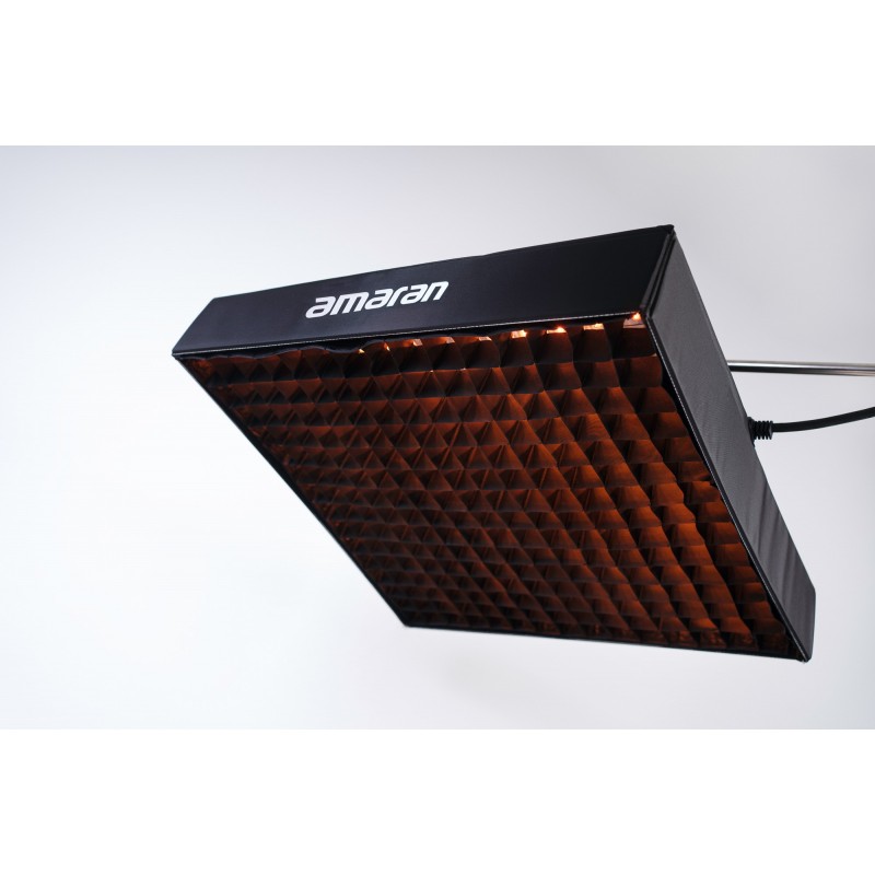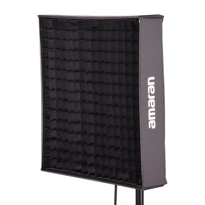 W zestawie z lampą LED Amaran F22c - V-mount znajdziesz modyfikatory pozwalające zmiękczyć światło, rozproszyć ostre cienie i w razie potrzeby odpowiednio ukierunkować wiązkę. Możesz skorzystać z jednej lub dwóch tkanin dyfuzyjnych (-0,5 EV oraz -2,5 EV) lub sięgnąć po "plaster miodu" (grid 45°). Dzięki rzepom Velcro każdy z modyfikatorów w wygodny sposób zainstalujesz wewnątrz softboxa.