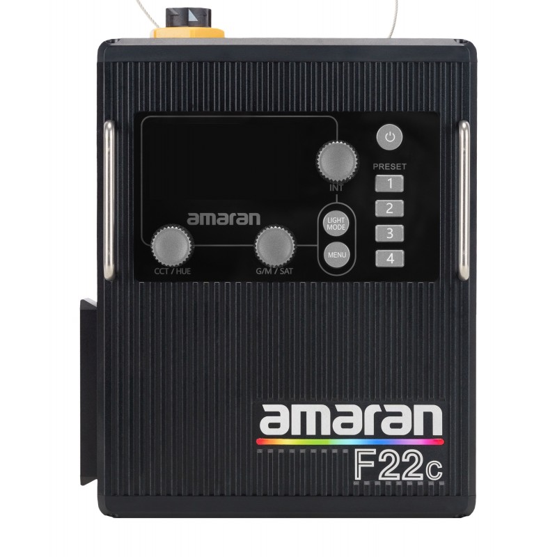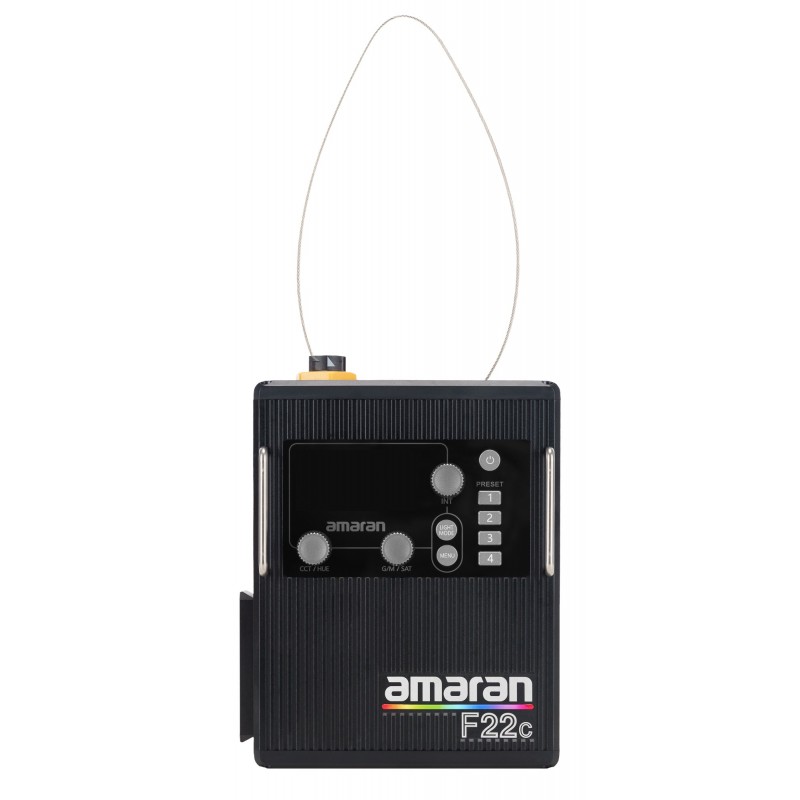 Dołączony do zestawu zewnętrzny kontroler Control Box pozwalający sterować lampą waży zaledwie 1,2 kg. Smukła skrzynka z pewnością przypadnie do gustu osobom, które ceniące sobie minimalizm i ergonomię pracy. Urządzenie wyposażono w jasny wyświetlacz OLED oraz wygodne w obsłudze przyciski, oraz pokrętła. Na jego obudowie znajdziesz płytkę szybkiego montażu, z którą możesz połączyć uchwyt Lighting Clamp. Nie zabrakło też metalowej linki pozwalającej bezpiecznie zawiesić kontroler w wybranym miejscu.