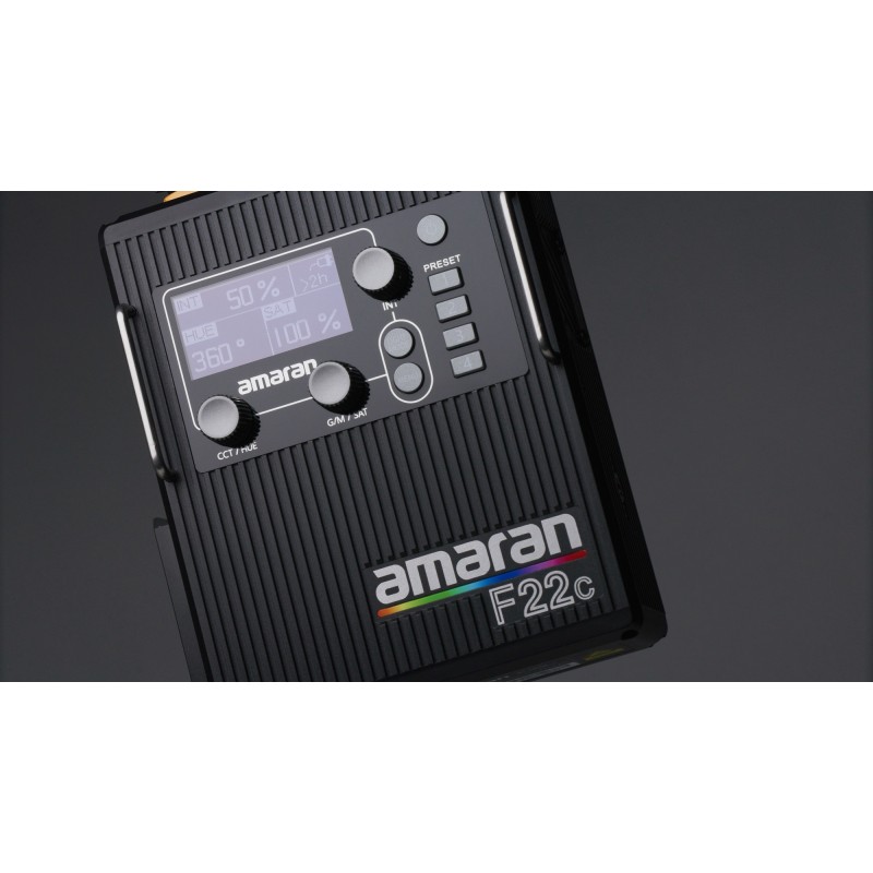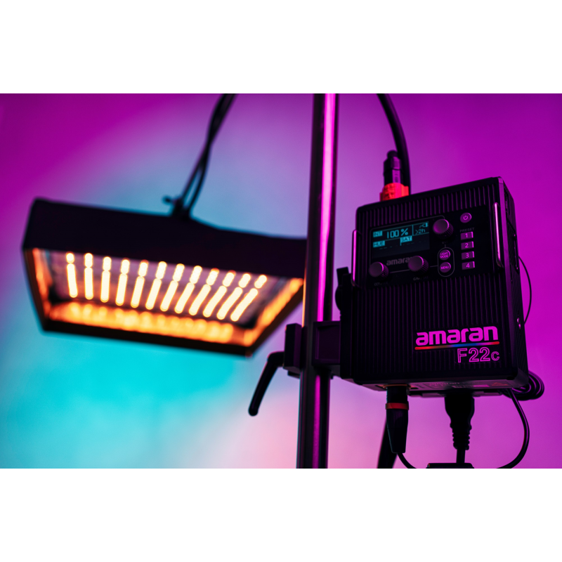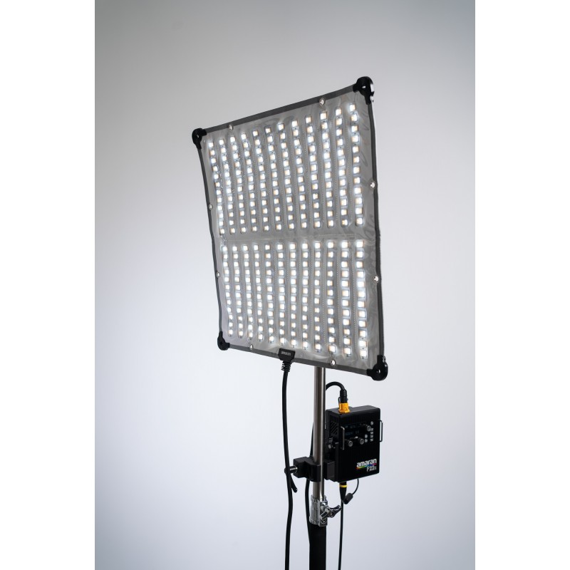 Amaran F22c - V-mount to elastyczna mata świetlna o wymiarach 60 na 60 cm, która stanowi wspaniałą alternatywę dla ciężkich paneli LED, zamkniętych w dużych obudowach. To idealny wybór do pracy w ciasnych i trudno dostępnych miejscach. Urządzenie ma 5 mm grubości i waży zaledwie 880 g. Zainstalujesz je w dowolnym miejscu za pomocą taśmy, rzepów Velcro lub opasek zaciskowych. Maksymalna moc wyjściowa lampy to aż 200 W. Innowacyjne diody LED RGBWW pozwolą na pracę z kolorowym światłem (paleta HSI) i regulację temperatury barwowej (2500 K - 7500 K). Rozkładany uchwyt X-Frame umożliwi połączenie lampy z profesjonalnymi statywami i uchwytami. W zestawie nie zabrakło też softboxa, grida, zasilacza oraz walizki transportowej.