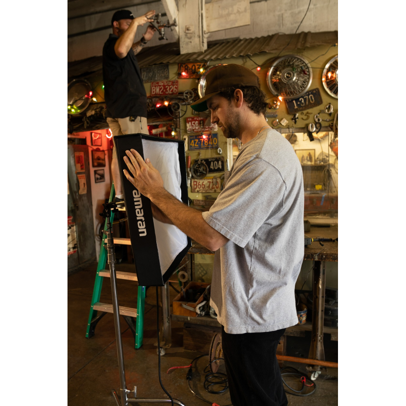Są plany filmowe, na których ograniczona przestrzeń znacząco utrudnia pracę ze światłem. Wtedy do akcji wkracza lampa LED Amaran F22c! Elastyczną matę świetlną o wymiarach 60 na 60 cm zainstalujesz wszędzie tam, gdzie nie ma miejsca na duże statywy. Przyklej ją taśmą do sufitu, wykorzystaj opaski zaciskowe, zaczep klamerkami w dogodnym miejscu lub połącz z uchwytami "magic arm". 5 mm grubości i 880 g wagi to parametry, które zapewnią Ci ultramobilność, jakiej nie oferują tradycyjne panele LED zamknięte w ciężkich obudowach.