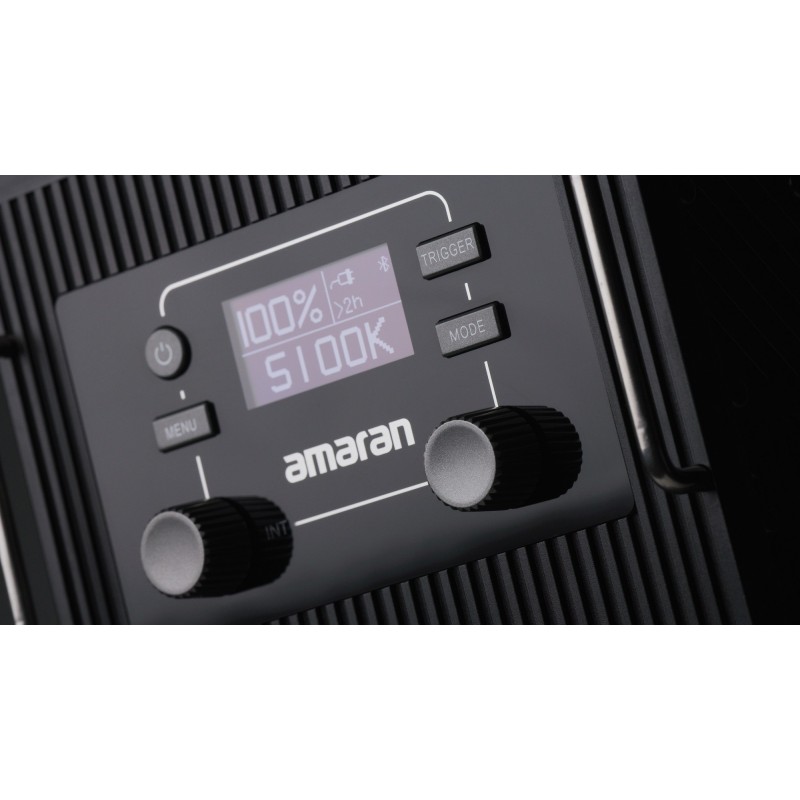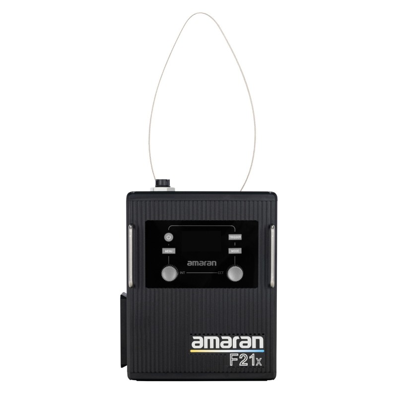 Dołączony do zestawu zewnętrzny kontroler Control Box pozwalający sterować lampą waży zaledwie 1,2 kg. Smukła skrzynka z pewnością przypadnie do gustu osobom, które ceniące sobie minimalizm i ergonomię pracy. Urządzenie wyposażono w jasny wyświetlacz OLED oraz wygodne w obsłudze przyciski, oraz pokrętła. Na jego obudowie znajdziesz płytkę szybkiego montażu, z którą możesz połączyć uchwyt Lighting Clamp. Nie zabrakło też metalowej linki pozwalającej bezpiecznie zawiesić kontroler w wybranym miejscu.