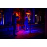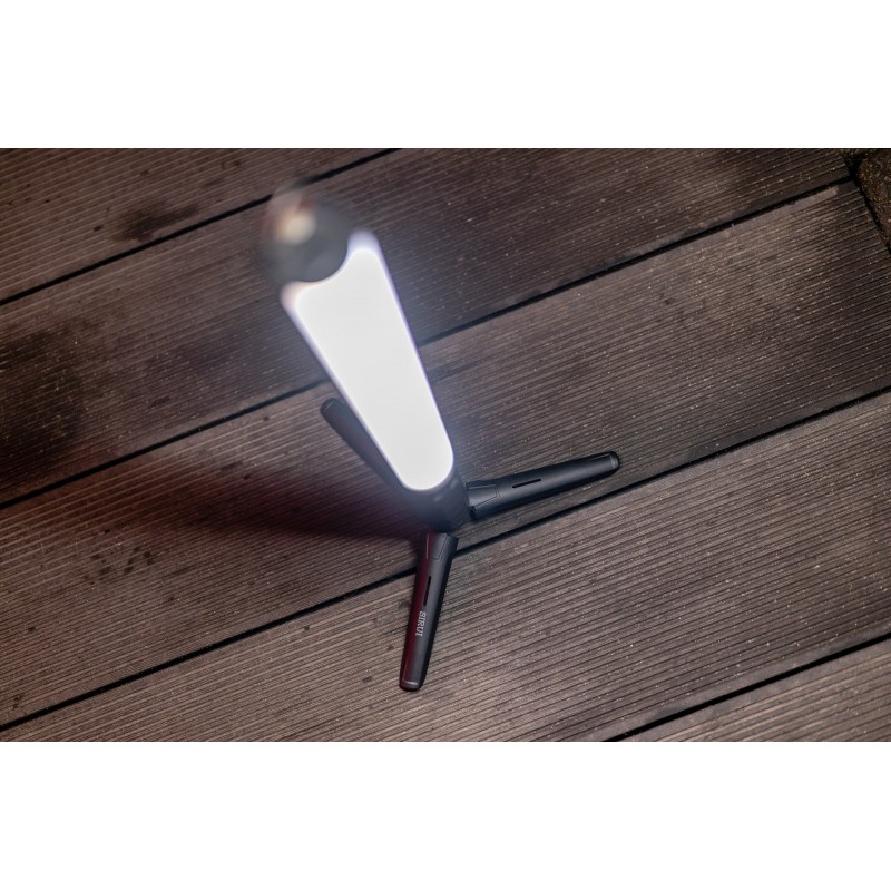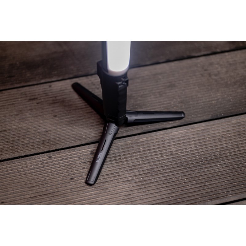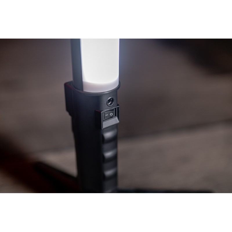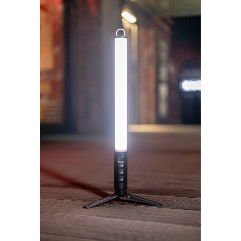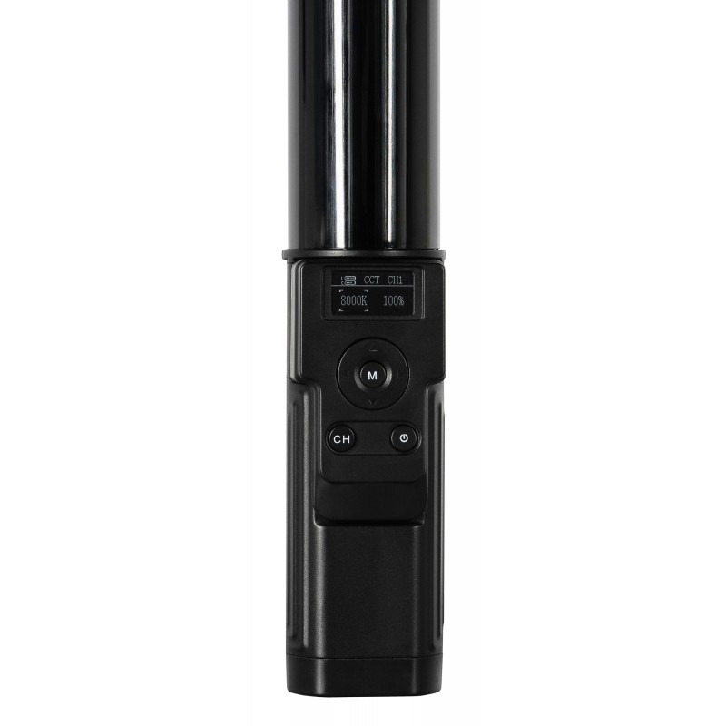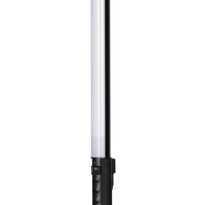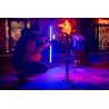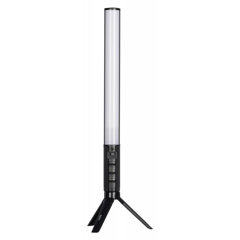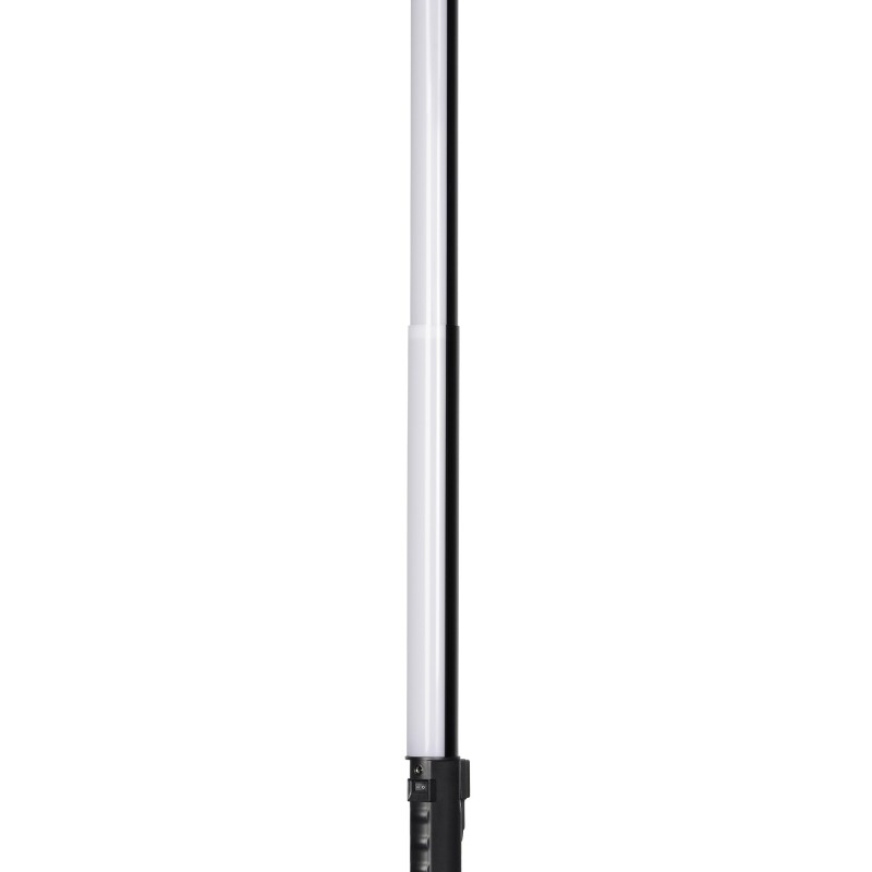 Lampa LED Sirui T60 - RGB, WB (2500 K - 8000 K) to miecz świetlny o unikalnej teleskopowej budowie. Jeden prosty ruch wystarczy, aby wydłużyć ją z 45,5 cm do 74 cm. To doskonały wybór dla kreatywnych fotografów i filmowców, którzy chcą tworzyć unikalną atmosferę za pomocą światła, eksperymentować z efektami specjalnymi lub "malować" techniką "light painting". Lampa oferuje regulację temperatury barwowej, możliwość zmiany koloru światła w obrębie obszernej przestrzeni barw HSI, a także 14 gotowych efektów specjalnych. Urządzenie wyposażono w odczepiany panel kontrolny, który może pełnić funkcję pilota zdalnego sterowania. Miecz jest również kompatybilny z dedykowaną aplikacją mobilną. Lampę może zasilać wbudowany akumulator lub dołączony do zestawu zasilacz.