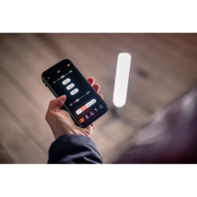 Zastosowany w lampie panel kontrolny łączy się z obudową za pomocą magnesów. Oznacza to, że w każdej chwili możesz go odpiąć i zamienić w pilota zdalnego sterowania. Będzie to szczególnie przydatne, jeśli przyjdzie Ci sterować kilkoma lampami LED Sirui T60 połączonymi w grupę. Dzięki wsparciu technologii Bluetooth miecz świetlny może być kontrolowana również za pomocą aplikacji mobilnej. Zdalne sterowanie z poziomu smartfona zapewni jeszcze większą swobodę pracy i możliwość precyzyjnej kontroli światła, nawet wtedy, gdy lampa znajduje się w odległości kilku metrów od Ciebie.