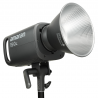 Aby sprostać wymaganiom każdego planu zdjęciowego, lampa Amaran 150c została wyposażona w mocowanie Bowens. Dzięki temu rozwiązaniu możesz połączyć ją z dziesiątkami różnych modyfikatorów światła dostępnych na rynku. Natężenie światła może zostać zwiększone za pomocą takich narzędzi jak soczewka Fresnel 2X lub strumienica Aputure Spotlight. To jednak nie koniec możliwości. Sięgając po jeden z unikalnych softboxów (m.in. Aputure Light Dome SE lub Aputure Light Octadome 120) skutecznie zmiękczysz lub rozproszysz światło. Jeden z modyfikatorów został dołączony do zestawu. To czasza Hyper Reflector z mocowaniem Bowens. Łącząc ją z lampą, osiągniesz natężenie światła sięgające 16510 luksów, przy temperaturze barwowej 7500 K.