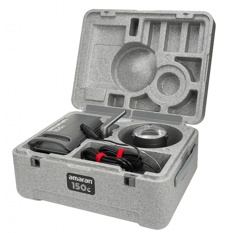 Konstrukcja lampy Lampa Amaran 150c została ulepszona względem starszych modeli marki. Wszystko po to, aby jeszcze bardziej poprawić komfort użytkowania, zachowując przy tym kompaktowe wymiary zapewniające ultramobilność. Nowe mocowanie Bowens zostało wykonane z metalu, aby z powodzeniem utrzymać cięższe modyfikatory. Zintegrowany uchwyt umożliwiający regulację kąta nachylenia zapewnia stabilne połączenie ze statywem. W razie potrzeby pozwoli też na komfortowe świecenie "z ręki". Na pokładzie nie zabrakło również uchwytu na parasolkę.