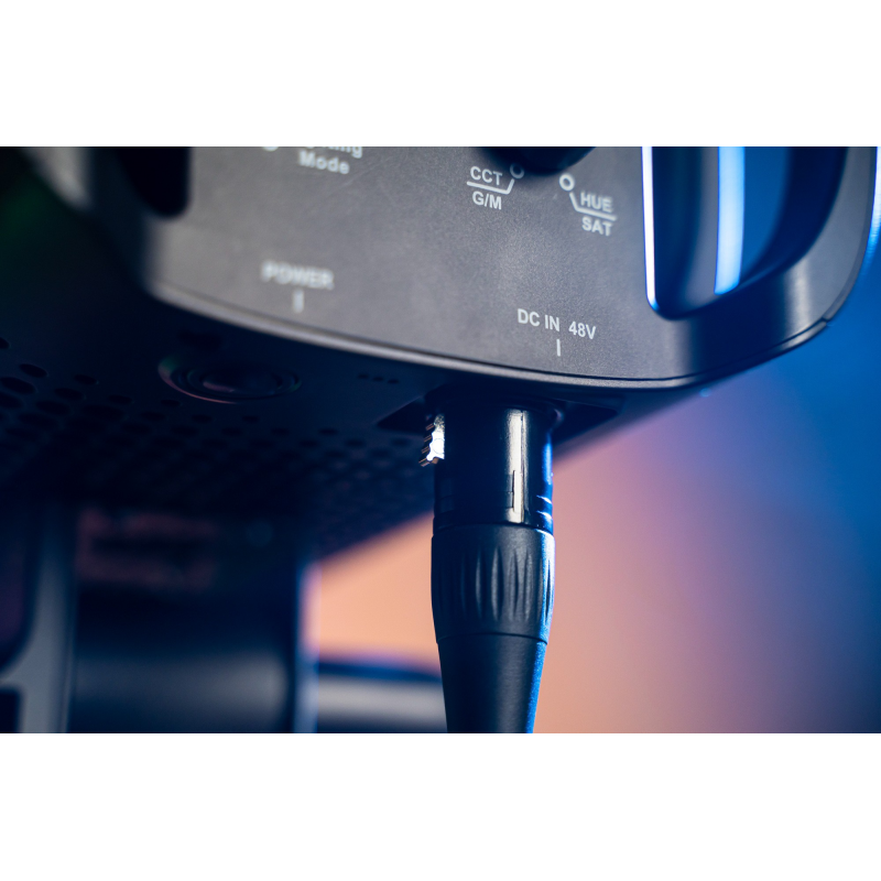 Lampa Amaran 150c oferuje to samo gniazdo zasilania 48 V DC, co modele Amaran 100 i 200 COB S, dzięki czemu możesz skorzystać z dołączonego do zestawu zasilacza lub sięgnąć po bardziej wszechstronne rozwiązanie. Wykorzystując stację zasilania Aputure 2-Bay Battery Power Station możesz zasilać urządzenie za pomocą akumulatorów V-Mount. Będzie to idealny wybór, jeśli pracujesz poza studiem, w miejscu, gdzie dostęp do gniazdka elektrycznego jest ograniczony.
