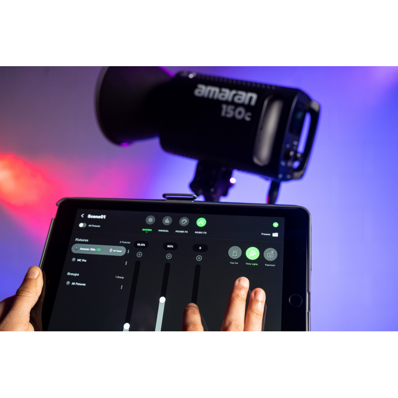 Nieważne, czy jesteś niezależnym filmowcem, profesjonalnym operatorem, fotografem lub właścicielem małej firmy produkcyjnej. Lampa Amaran 150c pomoże Ci osiągnąć idealną równowagę między optymalną mocą i pełną kontrolą kolorów. Model ten idealnie sprawdzi się zarówno na planie zdjęciowym, jak i w studiu – w małych i dużych przestrzeniach. Dzięki niej precyzyjnie dostosujesz oświetlenie do swoich indywidualnych potrzeb.